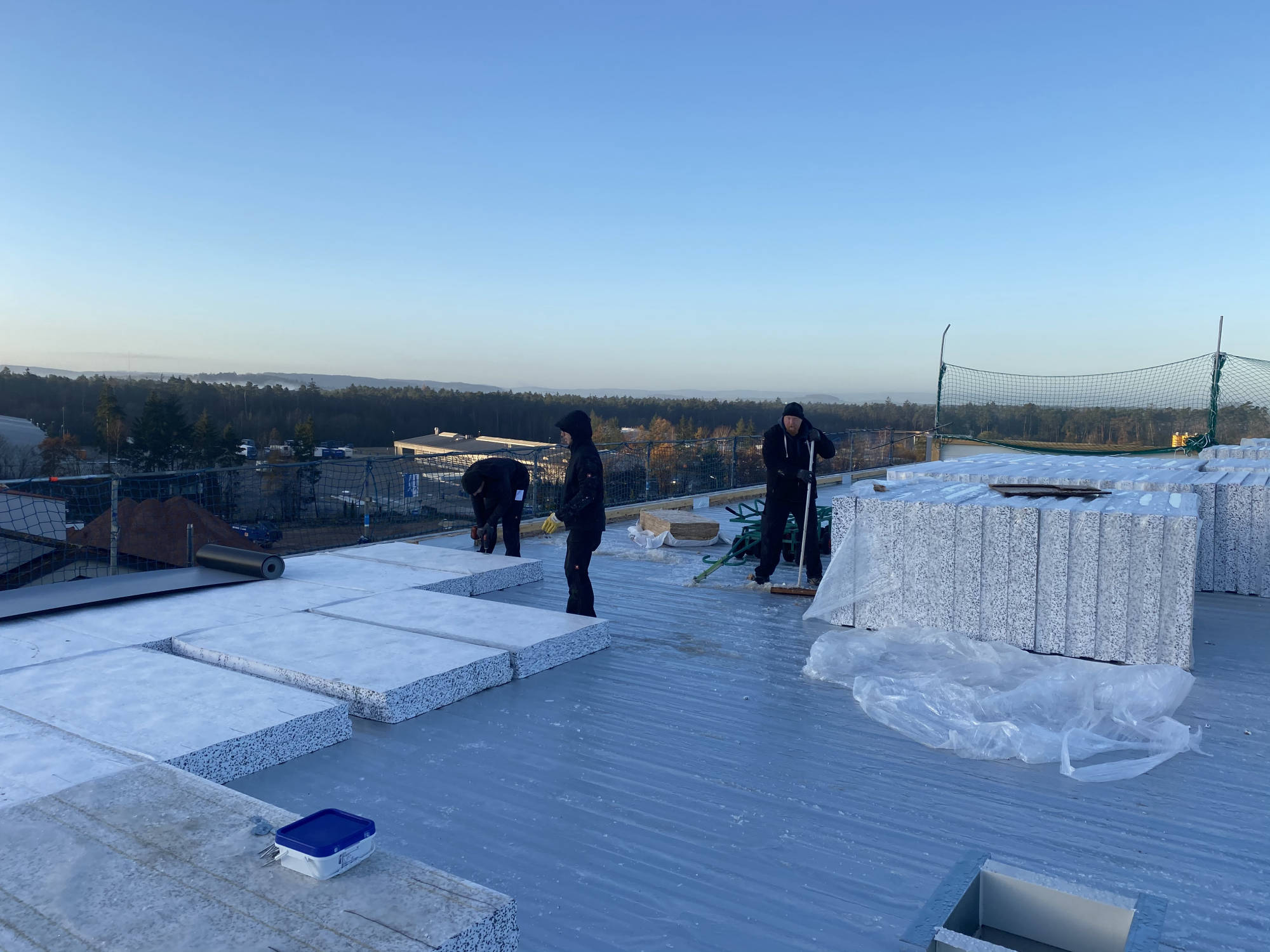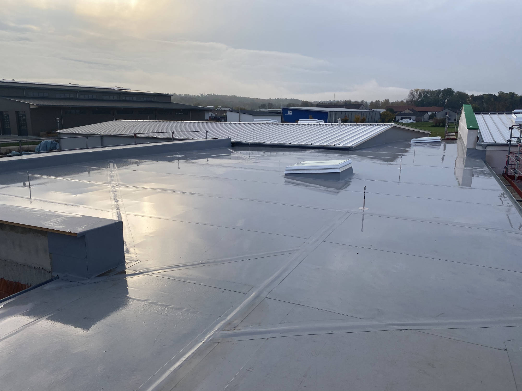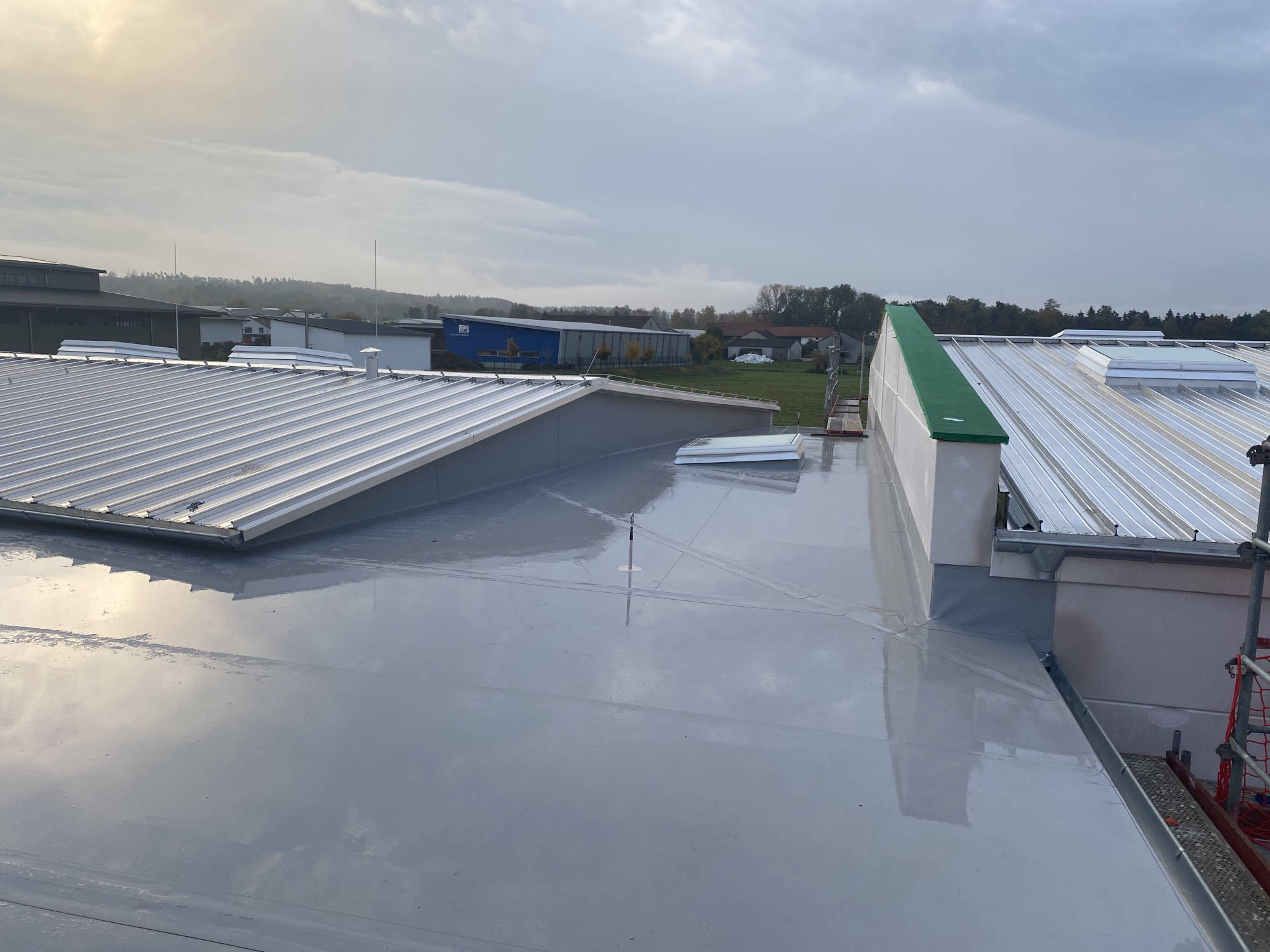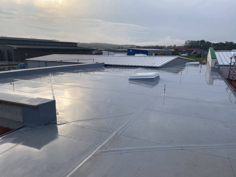 mit Schweißbahnen, Kunststoffbahnen und Flüssigkunststoff.