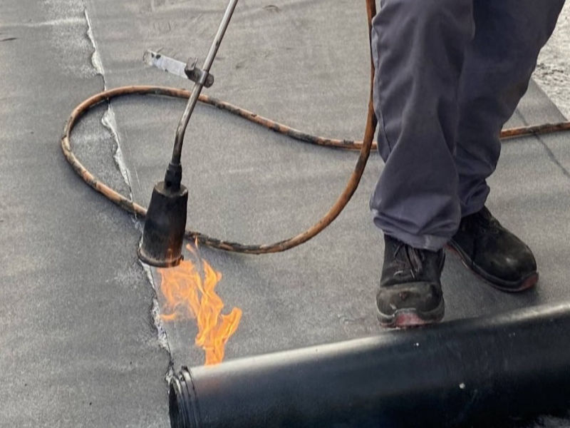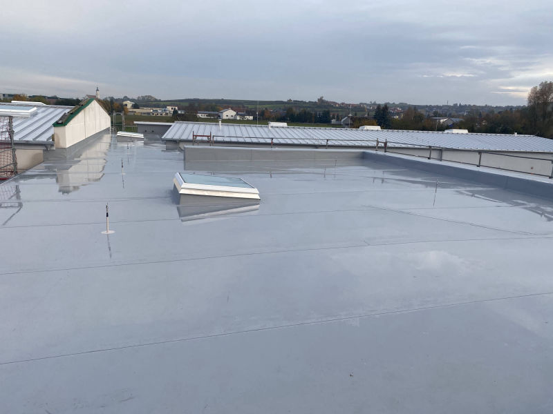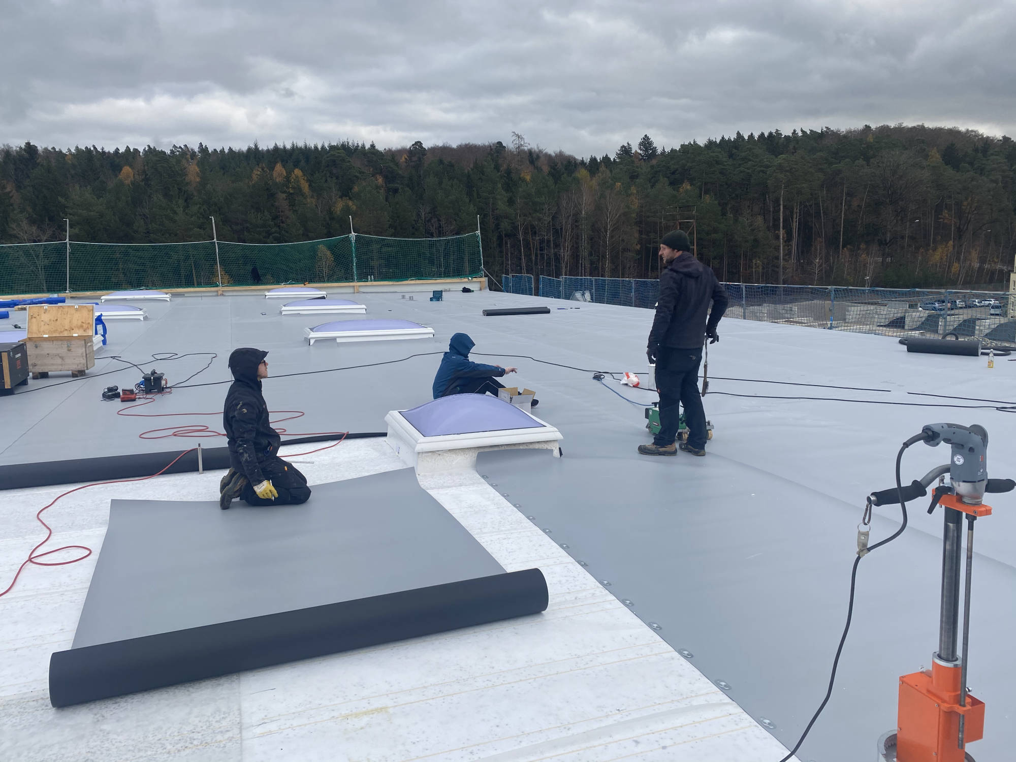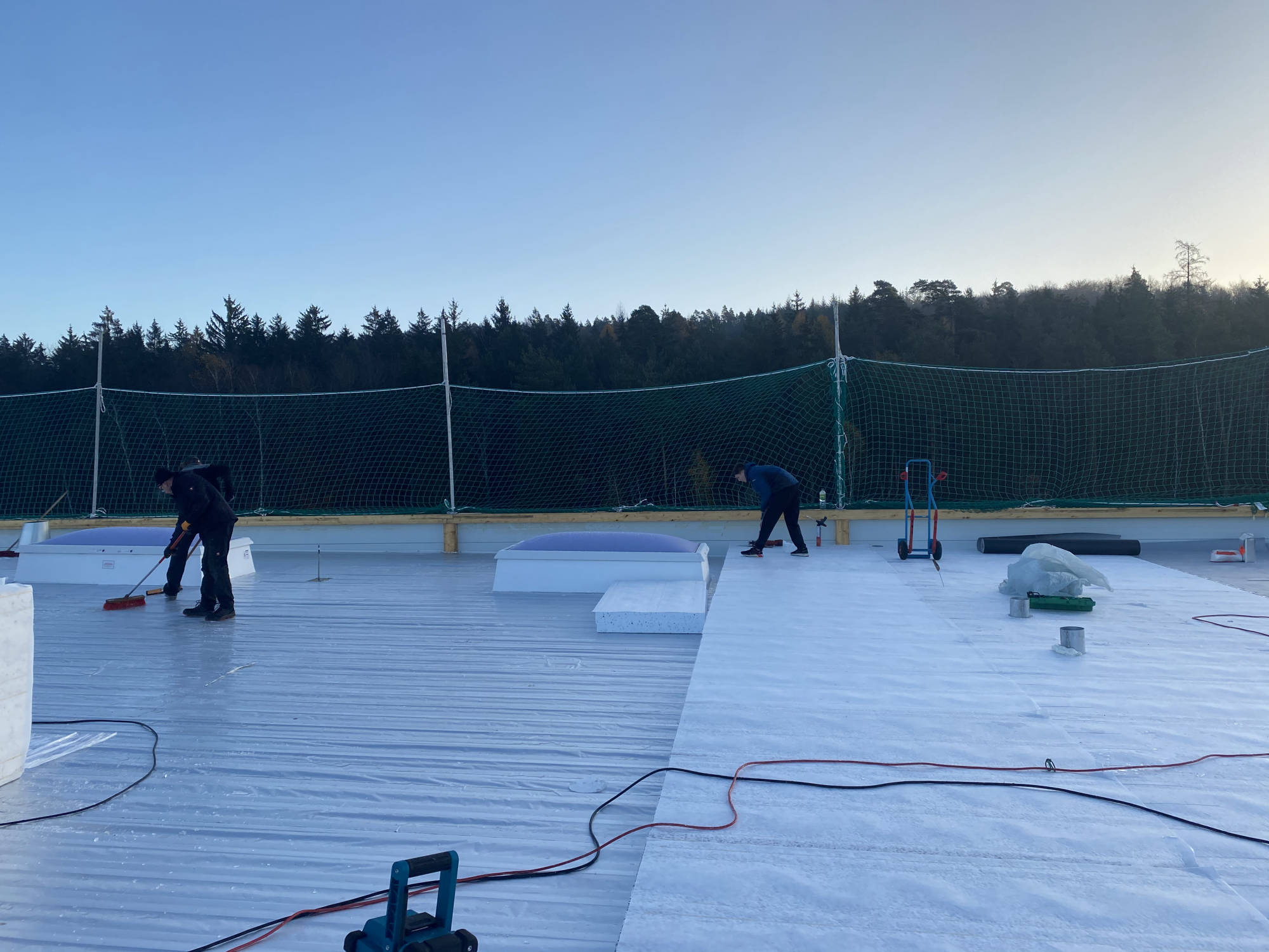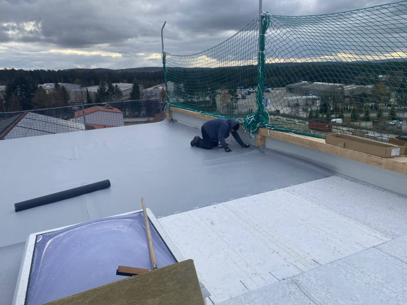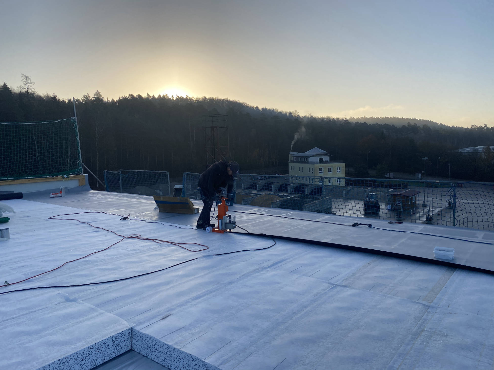 mit Schweißbahnen, Kunststoffbahnen und Flüssigkunststoff.